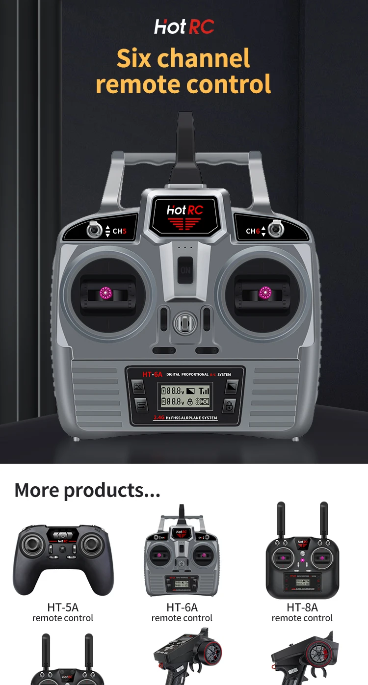 Enhance your RC experience with the Upgrade Hotrc HT-6A 2.4G 6CH RC Transmitter FHSS & 6CH Receiver. Ensure seamless control and efficient signal propagation for your FPV drones, airplanes, cars, and boats.